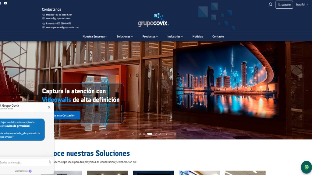 Grupo Covix offers LED displays and digital signage systems for retail chains, corporate environments, and public advertising networks.